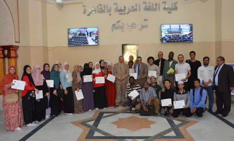 The World Organization for al-Azhar Graduates concluded the events of the training course “Grammar Misconceptions – Editing, Proofreading, and Benefiting”, which was organized in cooperation with the Faculty of Arabic Language in Cairo for some Egyptian and international students in the Hall of al-Gibaly in the Faculty of Arabic Language.