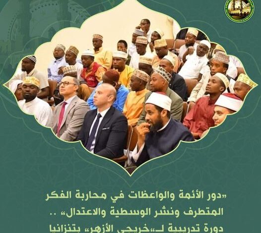 The branch of the World Organization for al-Azhar Graduates in Tanzania, in cooperation with the Islamic Egyptian Center and Supreme Council for Islamic affairs in Tanzania, held a training course for Imams and female preachers entitled “The Role of Imams and Female Preachers in Confronting the Extremist Thought and Spreading the Moderation”. The course was held in the hall of the Islamic Egyptian Center in Dar ES Salaam. It is worth mentioning that the training course addressed the importance of moderation among preachers and responding to misleading controversies of intolerants in the presence of 150 people.