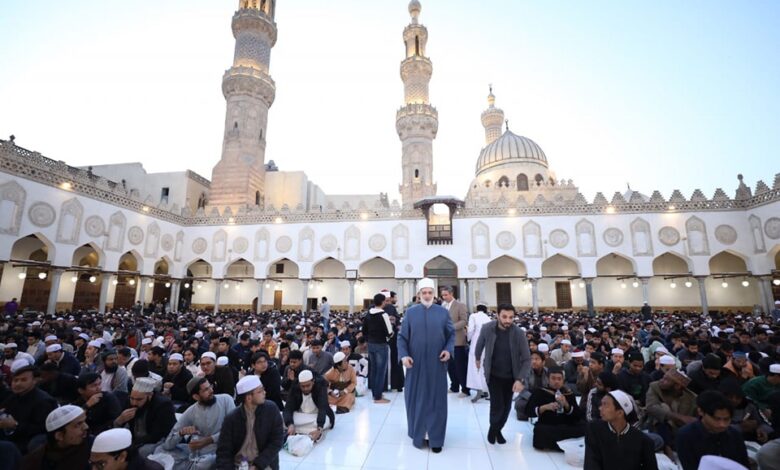 It is worth mentioning that al-Azhar Mosque continues its academic and preaching plan during Ramadan month following the directions of the Grand Imam, Prof. Ahmad at-Tayyeb including, (130 Quran sessions – 52 gatherings after al-Dhuhr prayer – 26 gatherings after al-Asr prayer – Tarawih prayer at al-Azhar Mosque and Islamic Beouth city – 20 daily rakah with the ten recitations – 30 lessons with Tarawih prayers – Al-Tahajud prayer at al-Azhar Mosque and Islamic Beouth city – Organizing 7 events related to Ramadan month – 5000 daily Iftar meals for the international students, reaching a total of 150000 meals throughout the holy month.