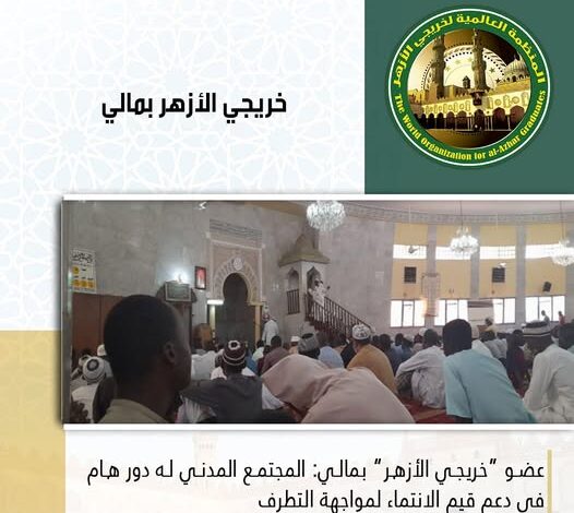 The branch of the World Organization for al-Azhar Graduates in Mali held a lecture titled “The Role of Civil Society in Combating Extremist Ideas” in Bamako. Mohamed Wagy, a member of the branch, delivered the lecture, emphasizing that extremism is one of the most pressing issues currently occupying public attention. He stressed that civil society institutions must play a vital role in promoting the values of belonging and social cohesion to counter extremist ideologies, particularly among young people, who are often targeted by terrorist groups seeking to spread chaos and promote deviant ideas within society.