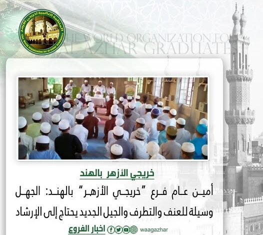 The World Organization for al-Azhar Graduates in India organized an awareness lecture aimed at equipping the new generation with knowledge and the teachings of the Holy Quran, emphasizing the importance of protecting them from the dangers of extremism. The lecture was delivered by Prof. Mohammad Shehab al-Din al-Azhari, Secretary-General of the Organization’s India Branch and Head of al-Rahmaniya School in Suffol, Darbahneh, Bihar.