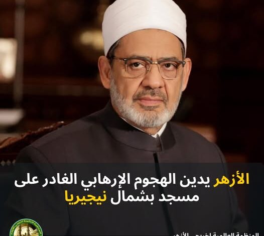 Al-Azhar strongly condemns the treacherous terrorist attack that targeted a mosque in Nigeria’s northern Katsina State during morning prayers, leaving dozens of innocent worshippers dead and wounded.