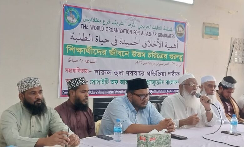 The branch of the World Organization for al-Azhar Graduates in Bangladesh, in cooperation with the Nouriya School, held an awareness seminar entitled “The Importance of Good Morals in the Student’s Life.” The event featured Sheikh Hussein al-Qadri, Director of the Nouriya School, and was attended by numerous professors, academics, and students.