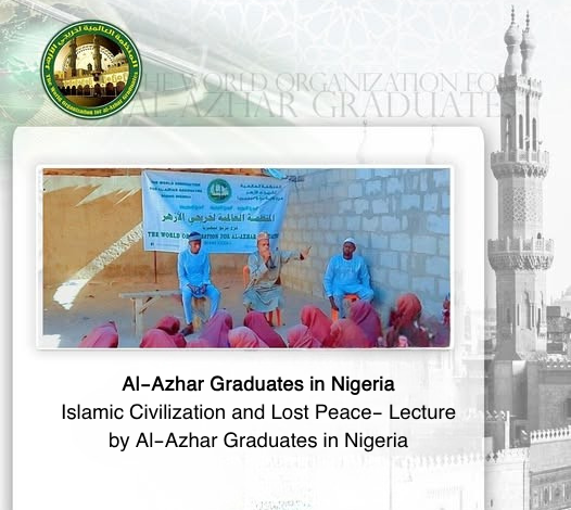 The World Organization for al-Azhar Graduates branch in Borno State, Nigeria, held a lecture titled “Islamic Civilization, Western Civilization, and the Lost Peace” at an-Noor al-Muhammadiyah Girls’ School in Maiduguri. Othman Saleh delivered the lecture and emphasized the Grand Imam’s view regarding how some contemporary civilizations have turned away from the guidance of religions and adopted conflict as a methodology.